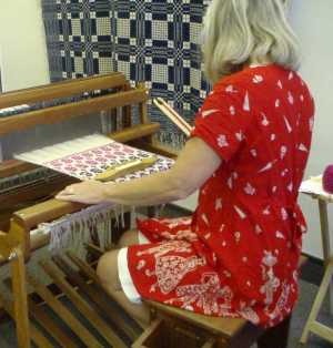 In overshot weaving, when you throw the shuttle the weft yarn "shoots over" a series of warp yarns, so that a decorative float appears on the cloth. In colonial times and in the 19th century, weavers used this type of weave to make beautiful coverlets for their beds. You can continue this folk art by learning the technique while making smaller items, such as table runners or towels. In this class you will warp the loom (with help), so completion of the Beginning Weaving class or equivalent experience is needed.