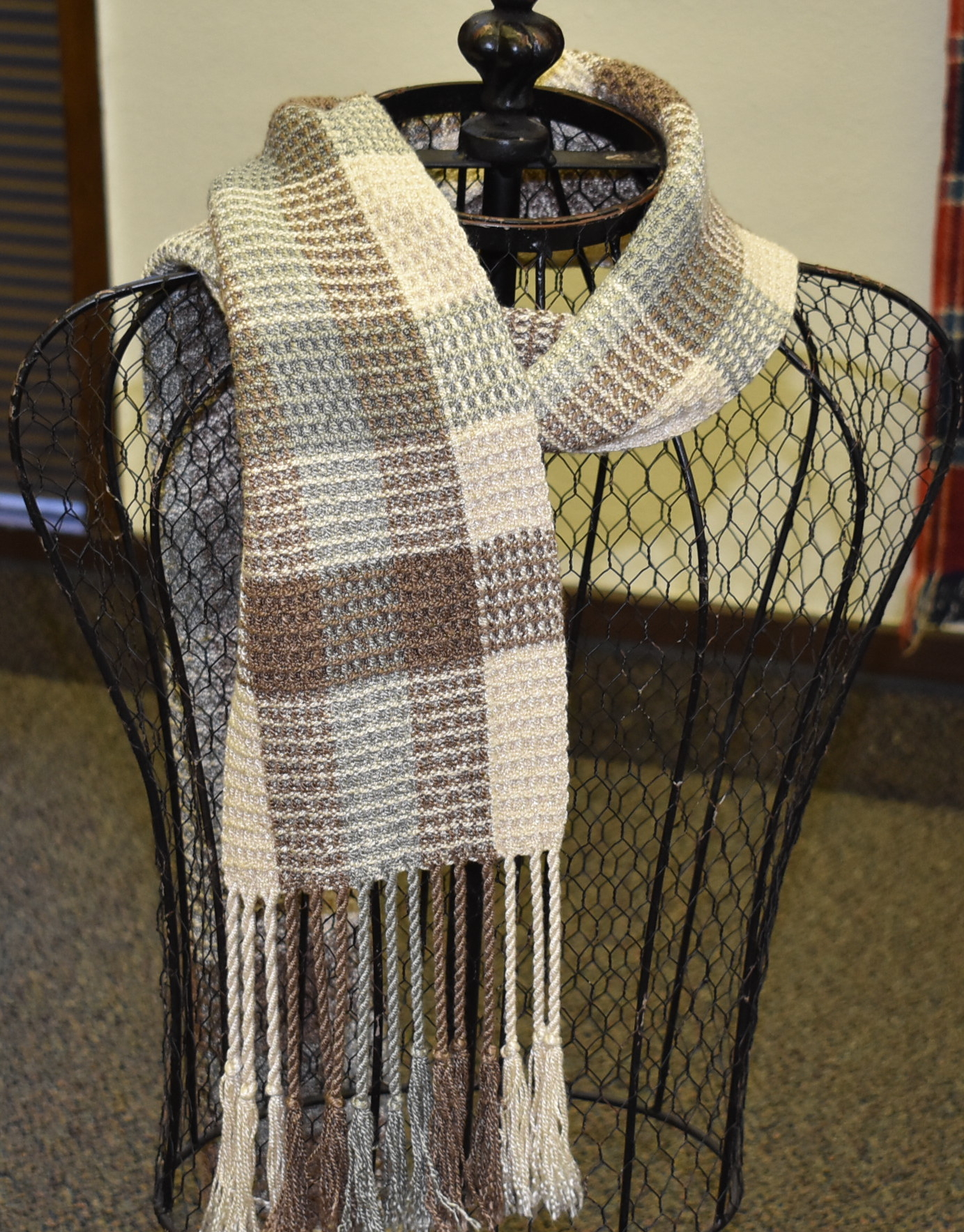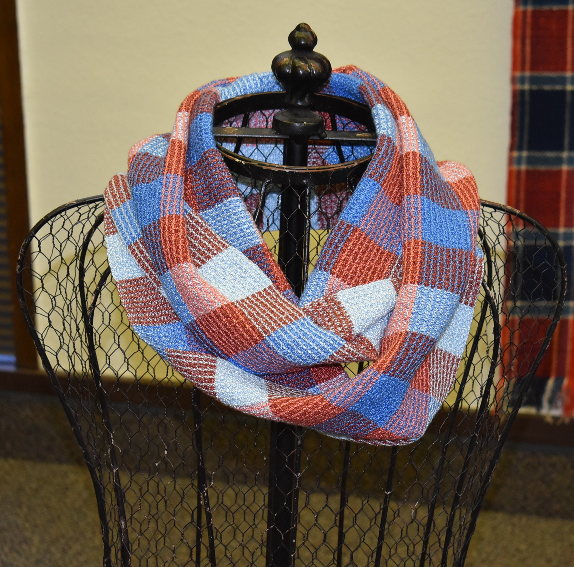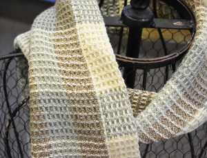 Waffle Weave has little squares that are indented in the center. They look much like a waffle! In this class you will learn the mechanics of weaving waffle weave, but the full effect will not be apparent until the item is washed. It is really three dimensional. You can weave a scarf, a cowl, or towels.